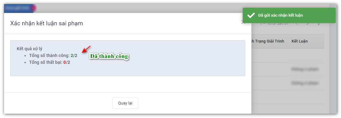 Lưu ý! Không thể kết luận sai phạm lần nữa sau khi phiếu đã hoàn thành quy trình duyệt.