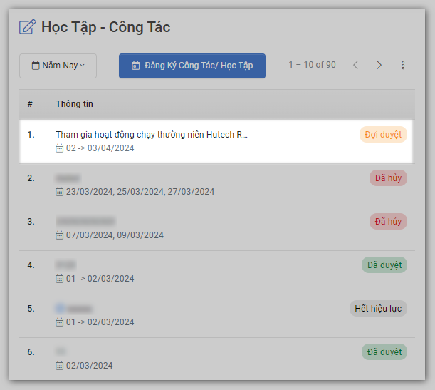 - Đợi duyệt: Đang chờ các Lãnh đạo, Quản lý, ... duyệt phiếu.