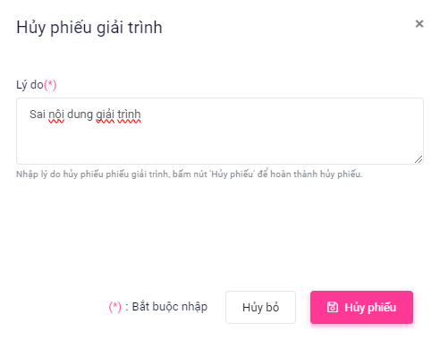 3. Thầy/Cô nhập lý do hủy và Hủy phiếu
