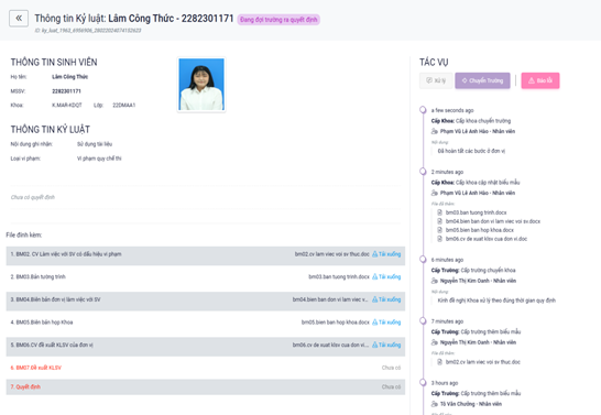 Các biểu mẫu đã được cập nhật được hiển thị ở phần thông tin SV, các tác vụ cũng sẽ được thể hiện ở bên cạnh.