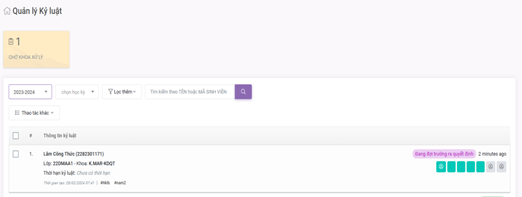 Truy cập: Sinh viên/ Khen thưởng kỷ luật/ quản lý cấp khoa