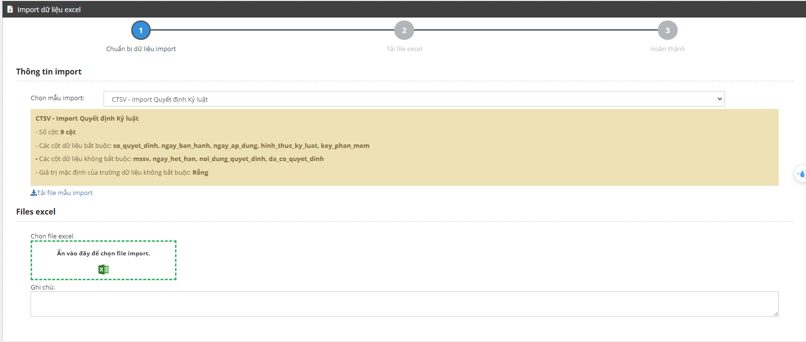Chọn “import quyết định kỷ luật”
